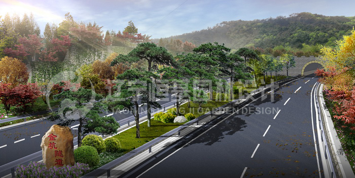 设计本着“美丽中国,生态文明”的理念,以生态的设计理念来模拟自然,让公路自然的“生长”。结合高速公路的特点,突出视觉上的变化,强调速度与周边环境完美融合的自然风格。运用辽宁本土植物群落,突出地方特色,运用“透”与“挡”的设计手法对周边景观进行屏蔽与展示,实现高速公路景观上的空间变化。