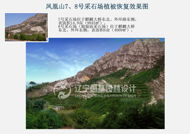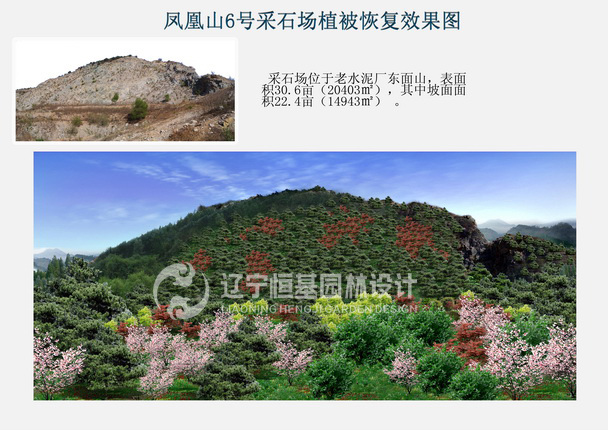 项目名称:朝阳市凤凰山采石场矿山地质环境治理项目地址:辽宁省朝阳市项目占地:107000平项目概况:项目主要针对采石场大面积裸露的地块进行植被恢复治理。根据场地坡度及土质等具体情况采用局部浇筑混凝土巢、人工挖穴、客土栽植的不同形式,选用当地抗性强的苗木,以自然的种植形式配置,力求达到“虽由人作宛自天开”的景观效果。