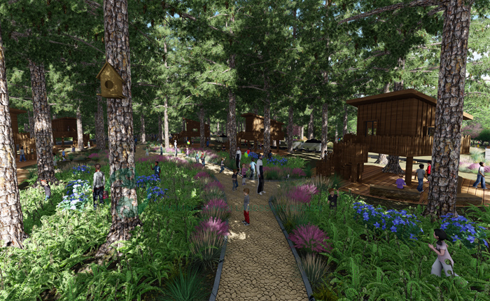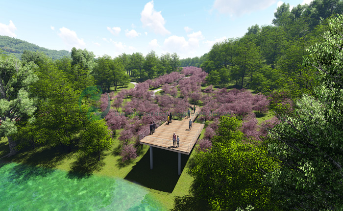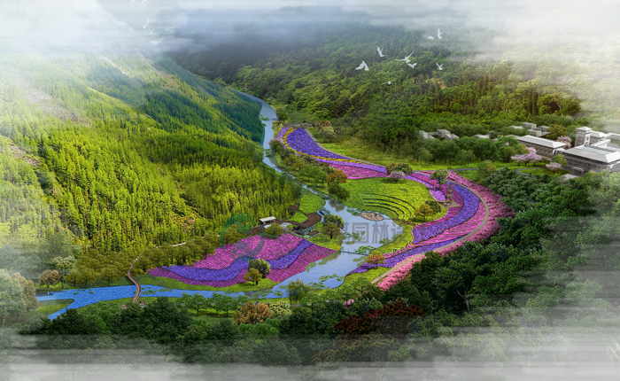 项目概况:利用溪流山体及现有所形成的林、田、石、河等元素,将人文元素与生态机理有机结合,塑造出世外桃源般的郊野森林公园,使其成为放松身心、净化心灵、陶冶情操、亲近自然的世外桃源,实现自然、城市与人的和谐共生。