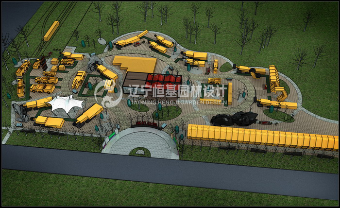 项目名称:三一重装煤机公园景观设计项目地址:辽宁省沈阳市项目占地:6900平项目概况:设计主要选择大尺度的型钢作为骨干材料,木材的选择尺度也相应放大,并处理得原始质朴,力求体现重工业特色。同时设计也传达了三一重装对环境的关注,煤矸石的运用,透水场地的处理,都体现出生态环保的理念。