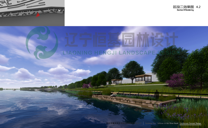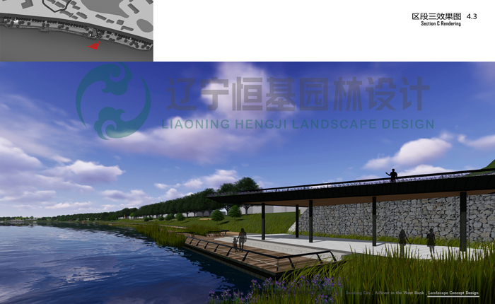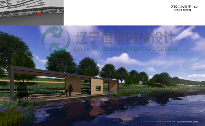 项目概况:爱河孕育了丹东地区历史上的文明,在这悠久的文化长河中,摆渡放排文化是其重要的组成部分,重拾星点遗迹和散落记忆,是本次设计的理念之一;而结合周边现状,创造一个——放松自然、享受文化、生态乡土的地方,是设计的理念之二。项目的规划设计为人们回归历史、回归乡土、回归人本提供一个精神场所,同时也赋予爱河活力、特色、内蕴、乡土、人文等特征。依托于项目现状,以爱河原有的乡土景观及历史文化为基础,拓展空间,布置多层次路网,来达到乡土、人文、生态、可持续的、独具地域特色的滨水景观带;同时吸引周边及外来游客,增加城市知名度,打造丹东市民的后花园。